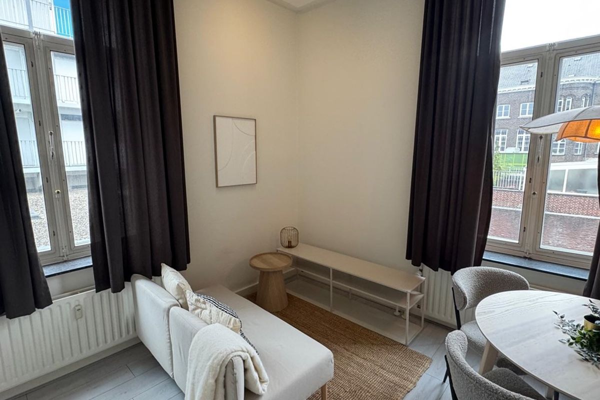 nieuw gerenoveerd gemeubileerd en gestoffeerd appartement op de 1e verdieping gelegen aan de Willem II singel met 1 slaapkamer (40m2) met balkon in het “oude” centrum van Roermond.