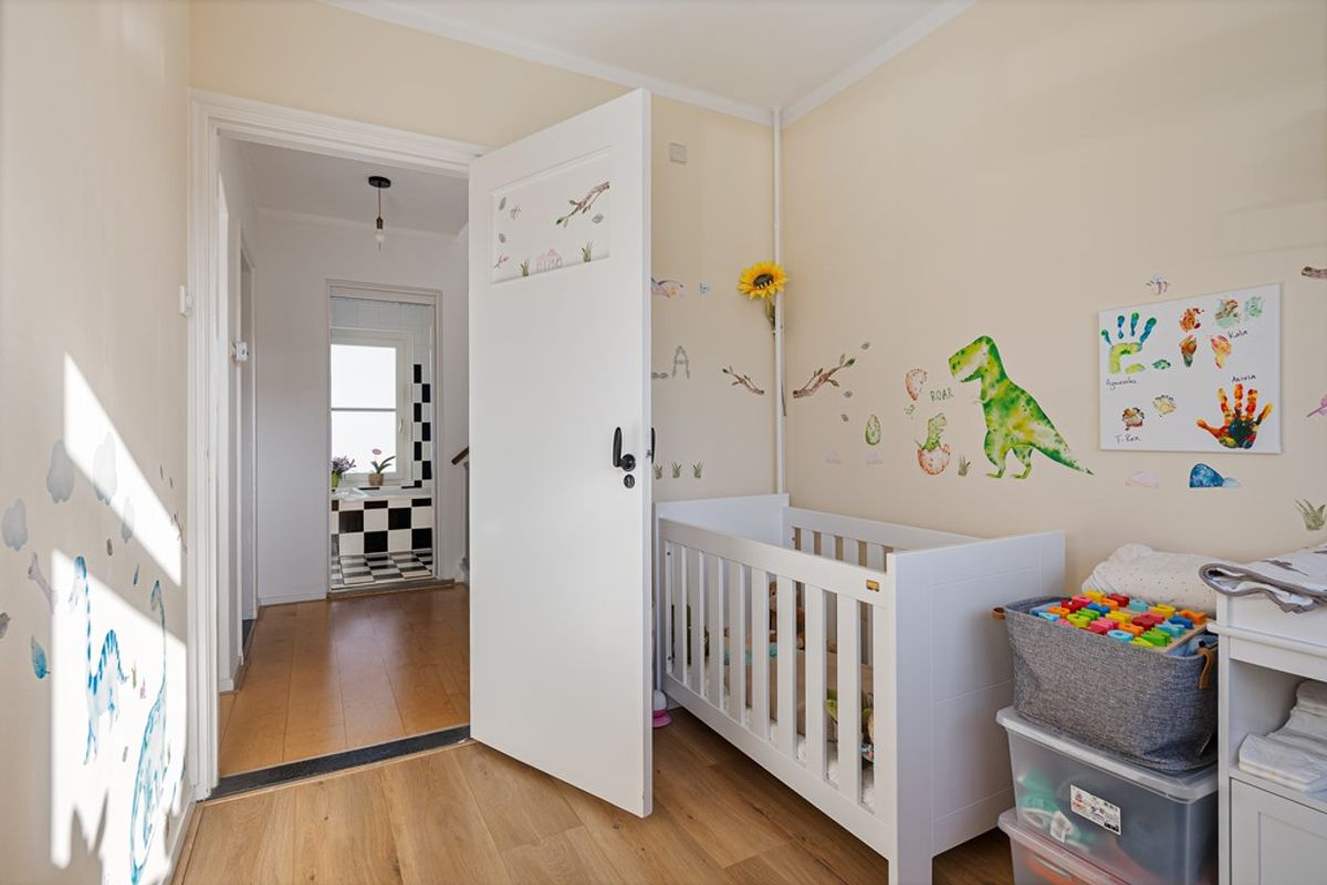 De overloop biedt toegang tot drie slaapkamers en de badkamer.