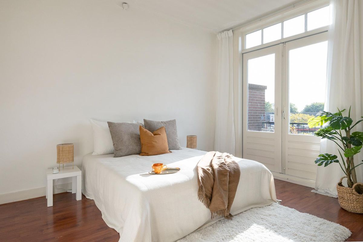 Op de tweede verdieping zorgt een dakraam boven de trap voor veel natuurlijk licht. Hier vind je een tweede keuken, compleet met vaatwasser, inductiekookplaat, oven en afzuigkap. In de drie ruime slaapkamers is het licht en comfortabel wonen. De kamer aan de achterzijde beschikt over dubbele deuren naar het tweede balkon en praktische kastruimte. Ook de tweede slaapkamer heeft een sfeervolle schouw.