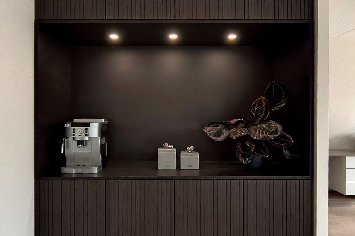 De keuken is een ware droom voor iedere kookliefhebber. Hoogwaardige afwerking en moderne apparatuur maken koken hier een plezier: twee combi-ovens, een kookplaat met geïntegreerde afzuiging, een luxe mengkraan, inbouw vaatwasser, koelkast en vriezer. Naast de keuken is een speciale coffee corner, perfect om de dag te beginnen met een heerlijke cappuccino of espresso.