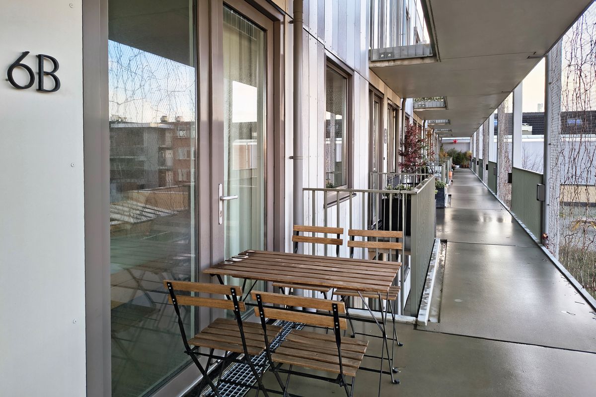 Je eigen appartement bevindt zich op de tweede verdieping. Eenmaal binnen kom je op het ruime balkon aan de portiekzijde, met een fraai uitzicht op de tuin beneden. Het balkon is voorzien van een comfortabele loungeset en biedt een perfecte plek om in zowel zomer als winter van buiten te genieten.