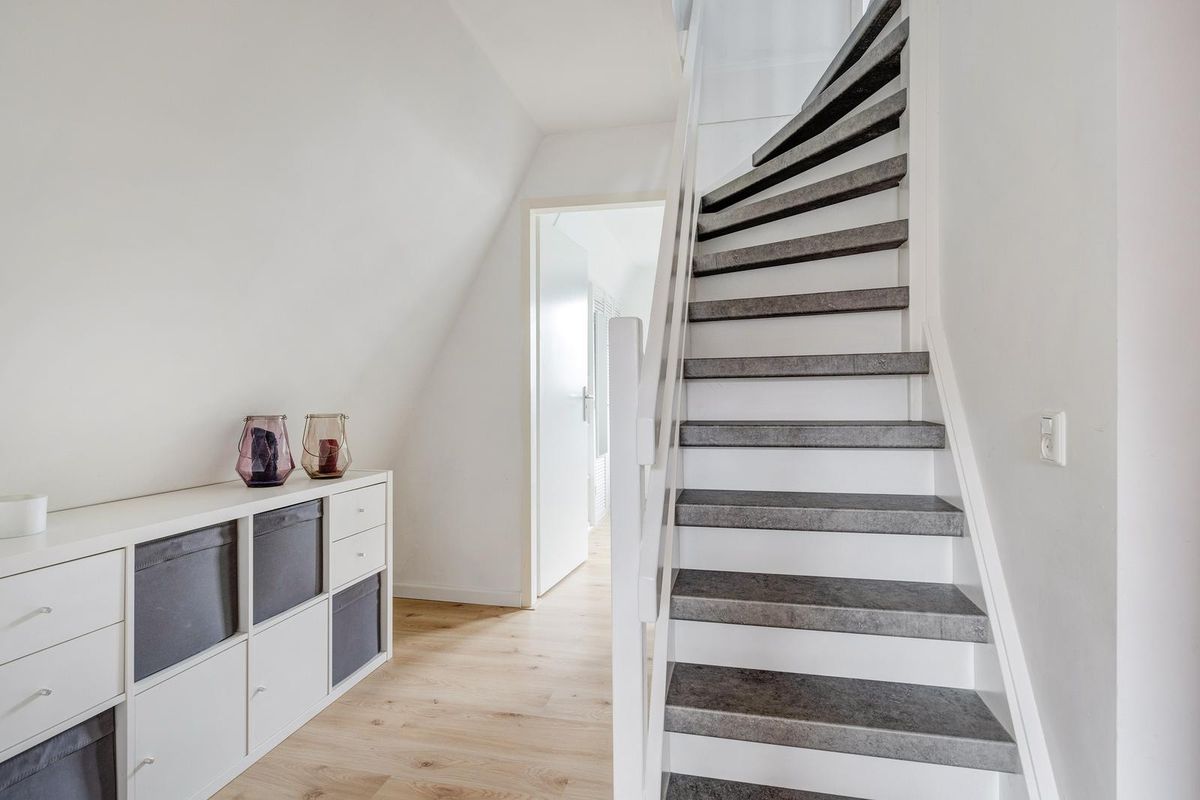 Overloop. Aan de voorzijde gesitueerde ouderslaapkamer. Tweede en derde slaapkamer aan de achterzijde. Moderne badkamer (2020) met dimbare spotjes welke is v.v. een inloopdouche met hand- en regendouche, hangend closet, dubbel wastafelmeubel, grote designradiator en een tuimelraam t.b.v. een prettige daglichttoetreding. De gehele verdieping is v.v. een nette, waterafstotende laminaatvloer (2020).