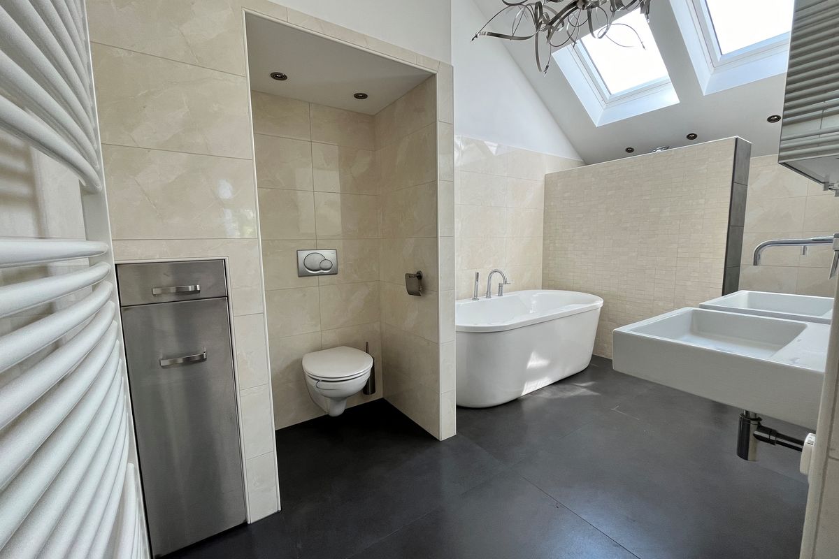 Tevens heeft u toegang vanuit de centrale hal tot de moderne, luxe, royale badkamer deze is voorzien van een ligbad, dubbele wastafels, een ruime separate inloopdouche en het 2e toilet.