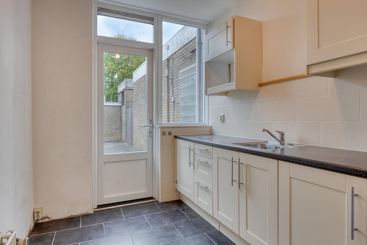 Vanuit de keuken kom je in de achtertuin. Op warme dagen heerlijk koken met de deur open en genieten van het zomergevoel.