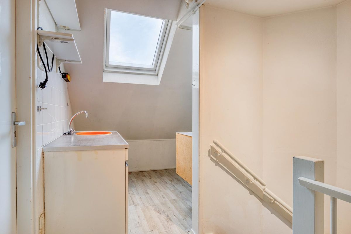 Via een vaste trap kom je op de voorzolder met een keukenblok voorzien van warm en koud stromend water. Tevens bevindt zich hier de opstelplaats voor de cv-combiketel en zijn hier ook de aansluitingen voor de wasapparatuur. Er is een nieuw Velux dakraam geplaatst en op de vloer ligt een laminaatvloer.