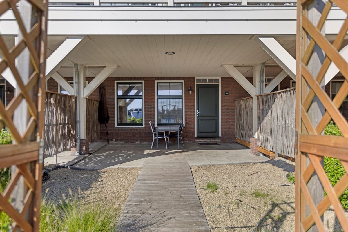 Het appartement beschikt over een groen aangelegde tuin met grote overkapping, grenzend aan de haven. Hier kun je in alle rust genieten van de buitenlucht en het schitterende uitzicht. De ruime overkapping biedt mogelijkheden voor een comfortabele lounge- of eethoek. Daarnaast is er voldoende ruimte voor groenliefhebbers om een eigen invulling te geven aan de tuin.
