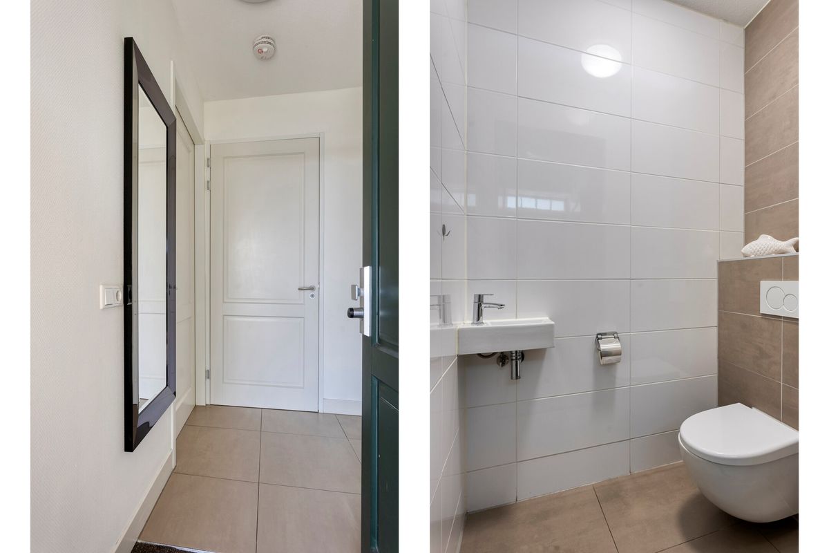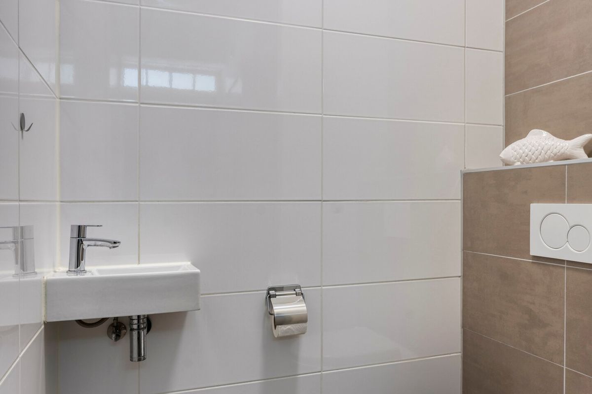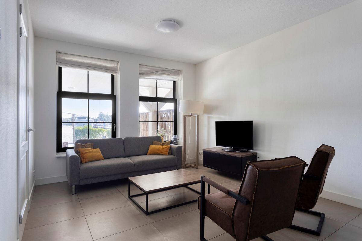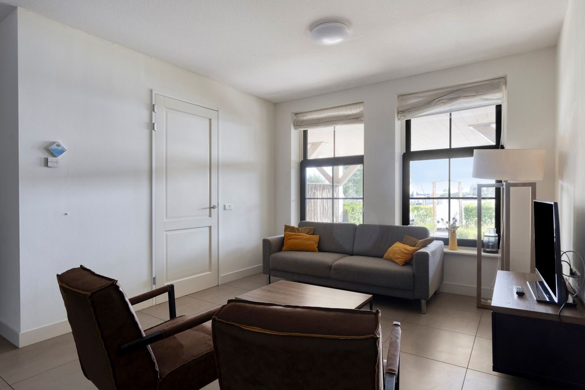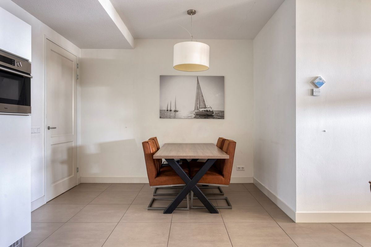Upon entering, you immediately experience the modern appearance and bright character of this home. The smart layout offers both functionality and warmth, starting with a neat entrance that provides access to the meter cupboard, toilet, and the living area. The spacious living room features two large windows that flood the space with natural light. Here you can enjoy the beautiful view of the harbor and the water. There is plenty of space for a comfortable sitting area, and a large dining table easily fits next to the open-plan kitchen.
