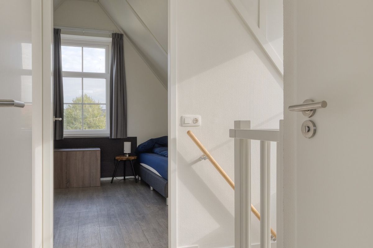 De bovenverdieping biedt ruimte aan twee comfortabele slaapkamers, allen met een charmant hoog plafond, een nette afwerking en raampartijen die zorgen voor veel natuurlijk licht. Deze verdieping is voorzien van de tweede badkamer, voorzien van een ligbad, wastafelmeubel en wasmachineaansluiting. Het toilet op deze verdieping is apart van de badmaker.