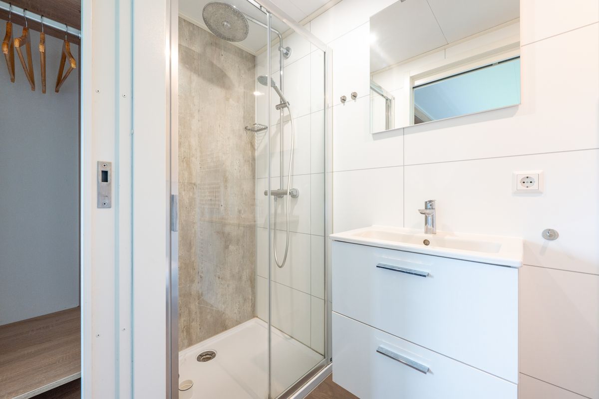 - De master bedroom is voorzien van een tweepersoonsbed, inbouwkasten en een eigen badkamer en-suite met inloopdouche, wastafel en toilet.
