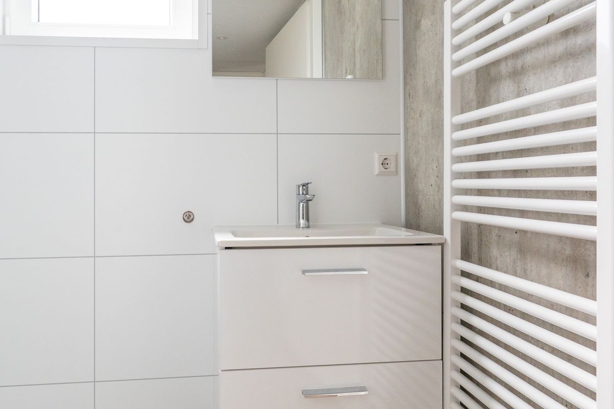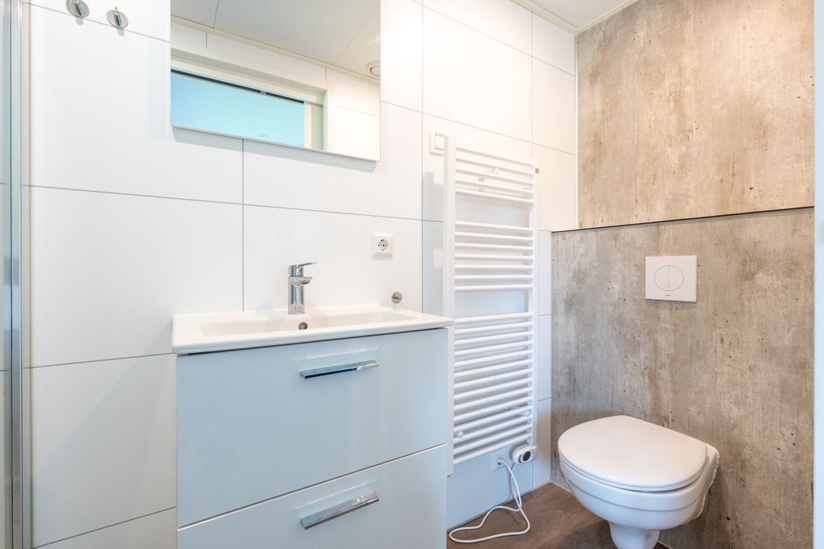 Daarnaast vind je in de hal een separaat toilet en een technische ruimte met aansluitingen voor wasmachine en droger.