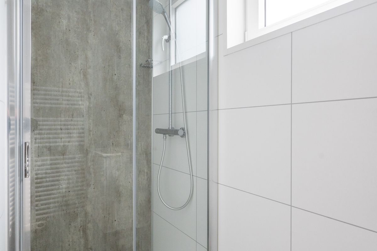 - De tweede slaapkamer is ruim genoeg voor een tweepersoonsbed of twee losse bedden en heeft toegang tot de tweede badkamer, uitgerust met douche en wastafel.