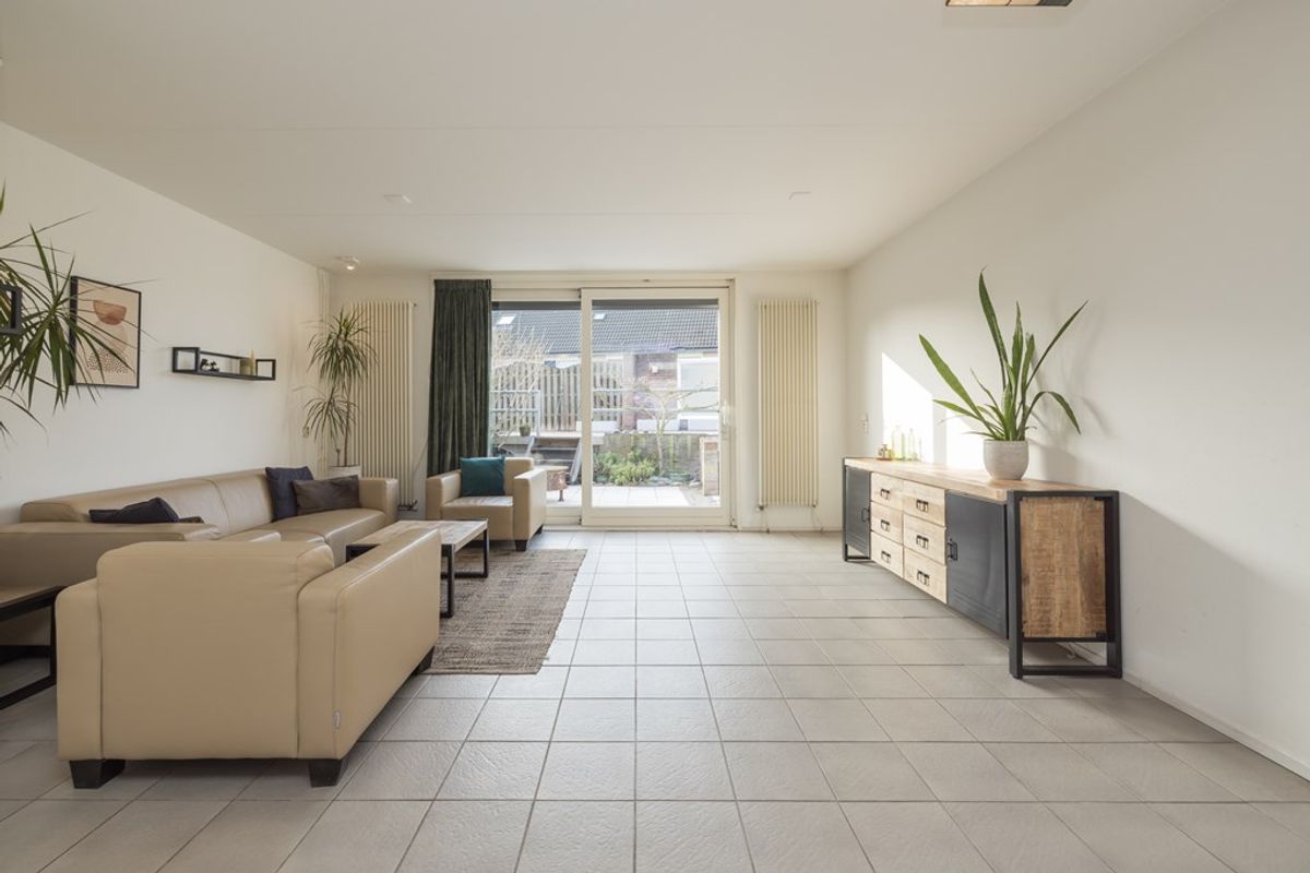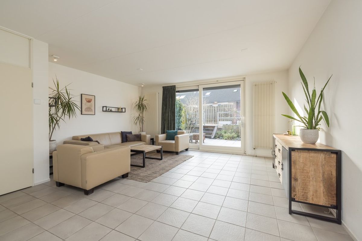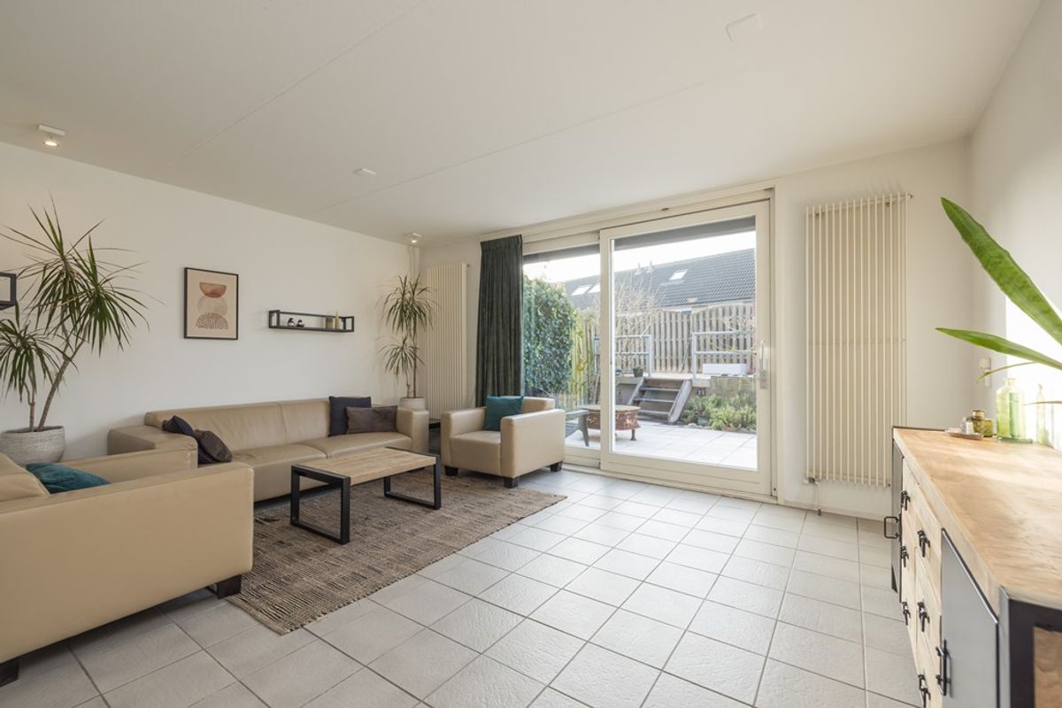 De achtertuin is zowel via een deur aan de zijkant als een deur aan de achterzijde bereikbaar. De zonligging van deze tuin is echt optimaal. Er is een elektrisch bedienbaar zonnescherm aanwezig voor verkoeling op de warme zomerdagen. De twee ruime bergingen liggen iets lager en zijn met een kleine trap of via de achteringang te bereiken.