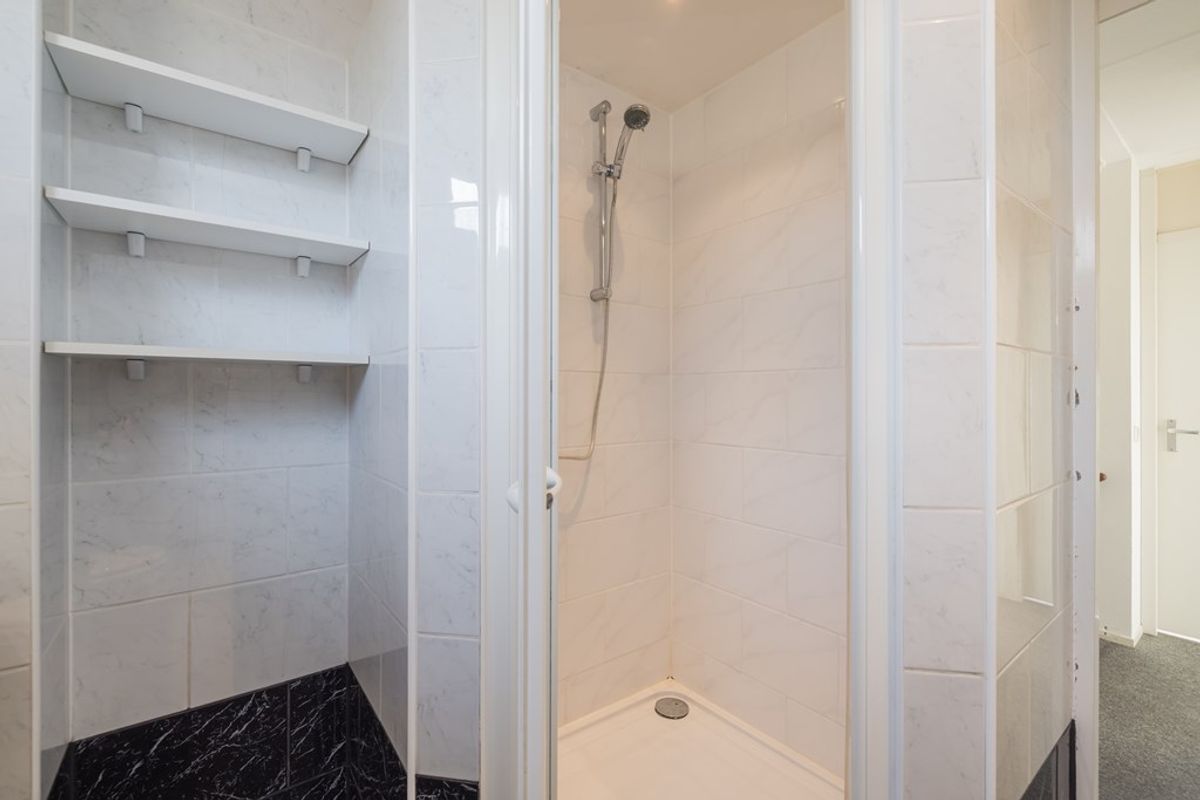 Op de overloop bevindt zich de CV-ketel, de ventilatie-unit, een dakraam en ingebouwde bergruimte met schuifpanelen. Via de overloop kan de bergruimte in de nok van de woning worden bereikt. De zolderkamer beschikt over een dakkapel, een dakraam en veel bergruimte. Vanuit de zolderkamer heeft u een weids uitzicht over het BAVO-terrein.