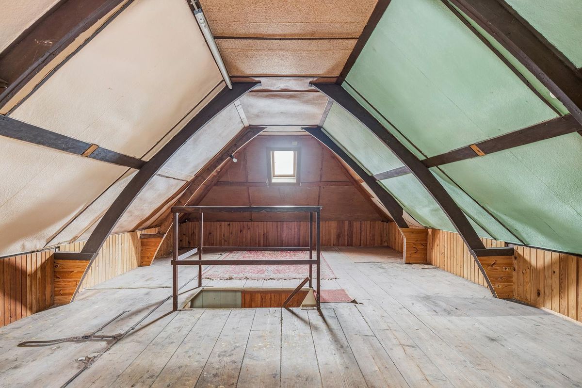 Eerste verdieping/zolder: Op de bovenste verdieping bevindt zich een nu nog in te delen grote ruimte.