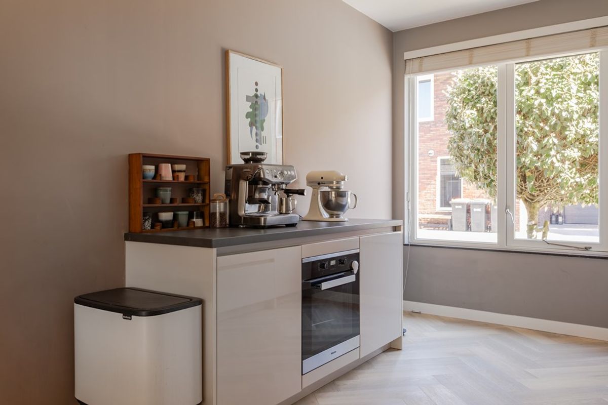 Bij de keuken zit een groot hardhouten kozijn met HR++ glas wat veel lichtinval geeft en 1 raam kan open zodat er goed geventileerd kan worden.