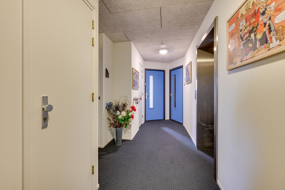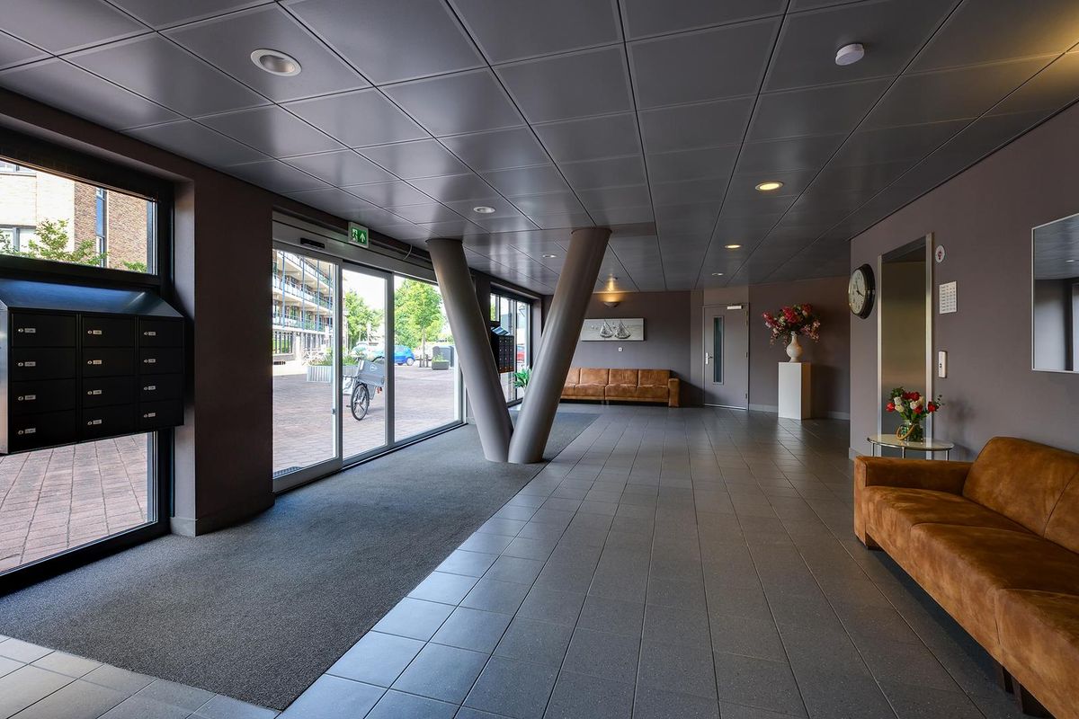 Algemene entree met bellentableau, de brievenbussen, toegang tot de bergingen en de lift.
