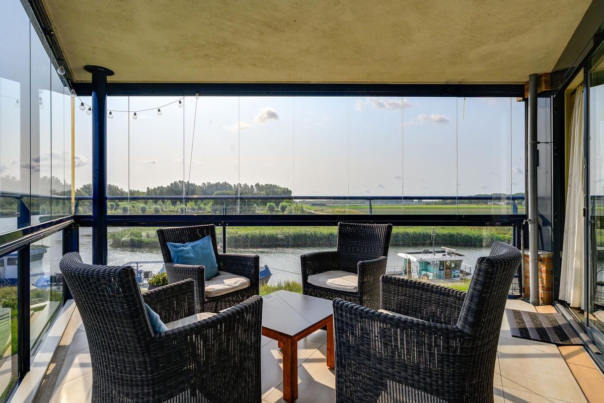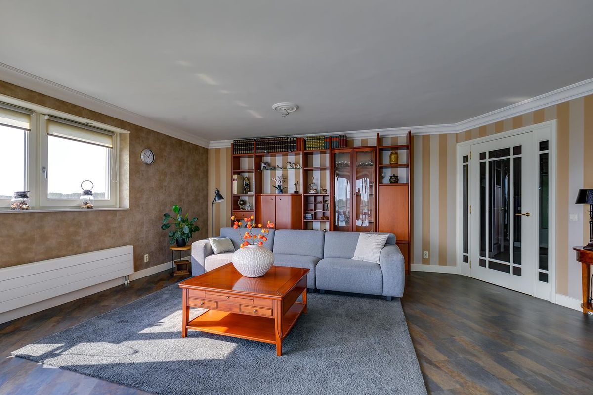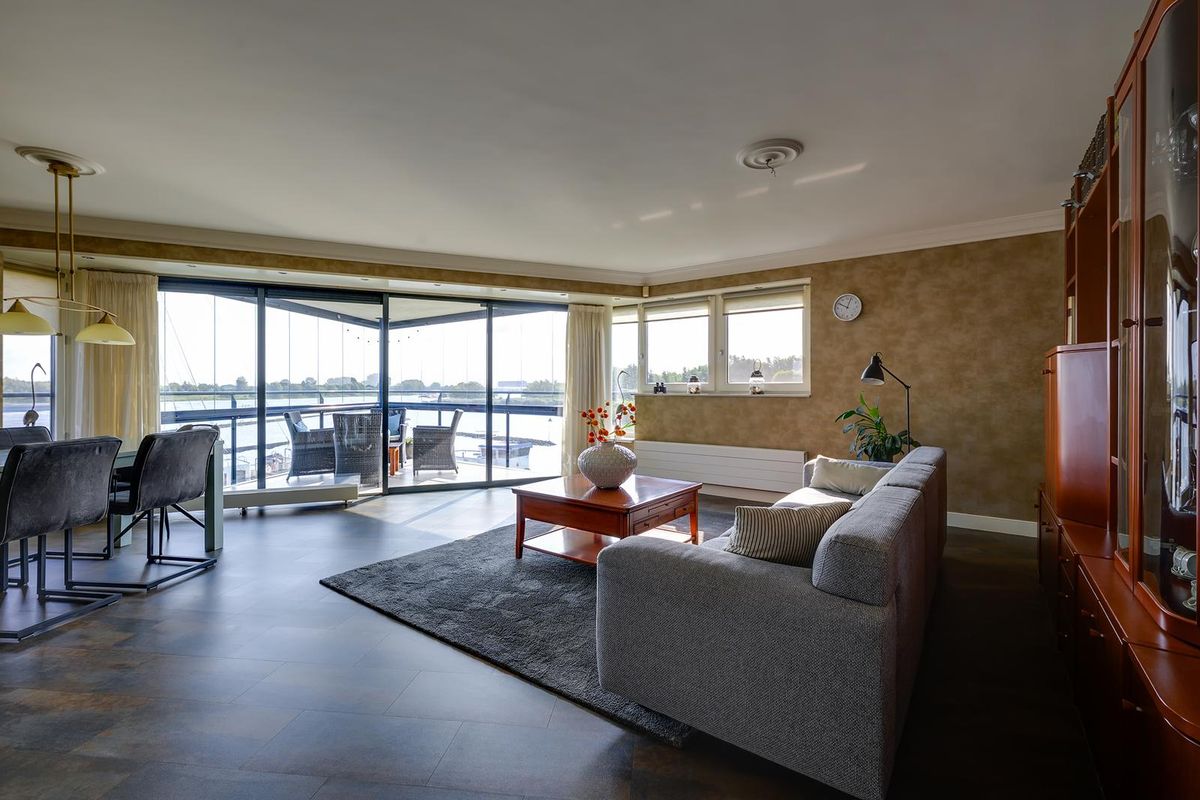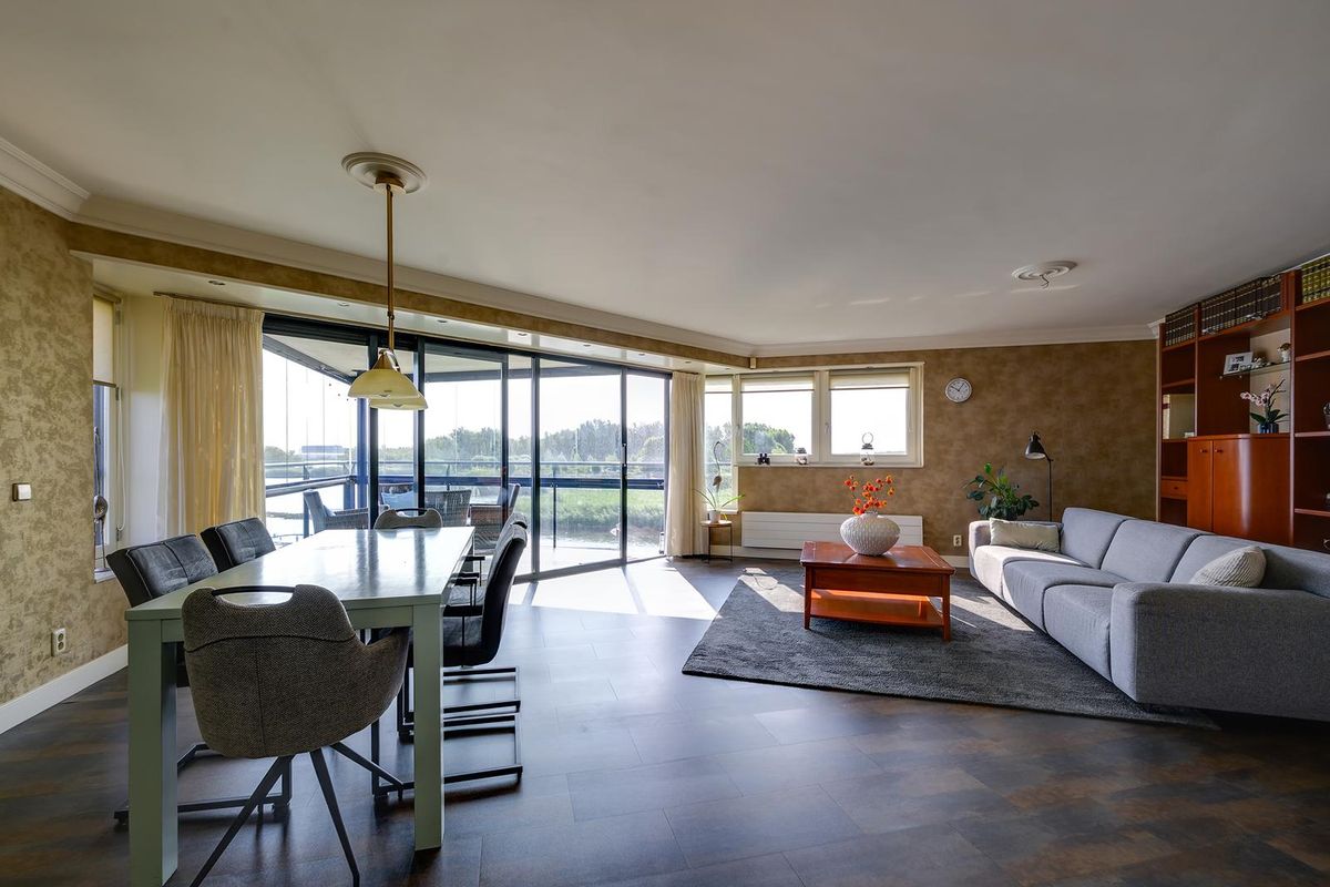 Een loopdeur geeft u toegang tot de ruime woonkamer. Door de grote glazen schuifpui is het een heerlijke lichte ruimte. De woonkamer is gelegen aan het terras met weids uitzicht over groen en water.