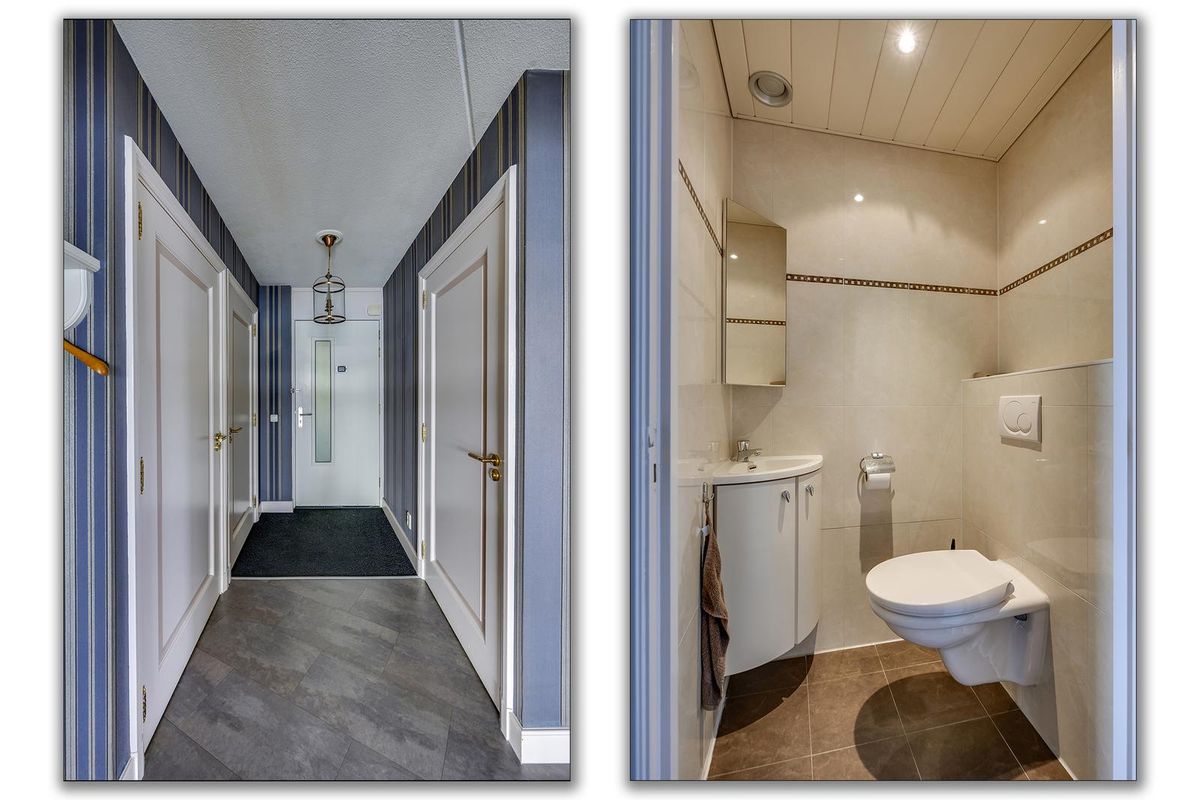 Zodra u het appartement betreedt, valt direct de hoogwaardige afwerking op; een nette vloer, hoge plinten, paneeldeuren en o.a. toegang tot de woonkamer. In de hal vindt u de toiletruimte, garderobe en de toegang tot alle vertrekken. Allereerst de badkamer en de technische ruimte met opstelling voor de cv-ketel en de aansluitingen voor het witgoed.