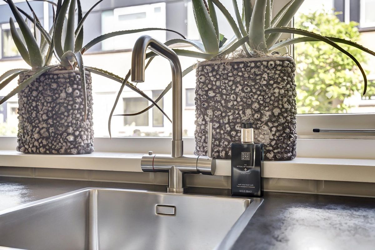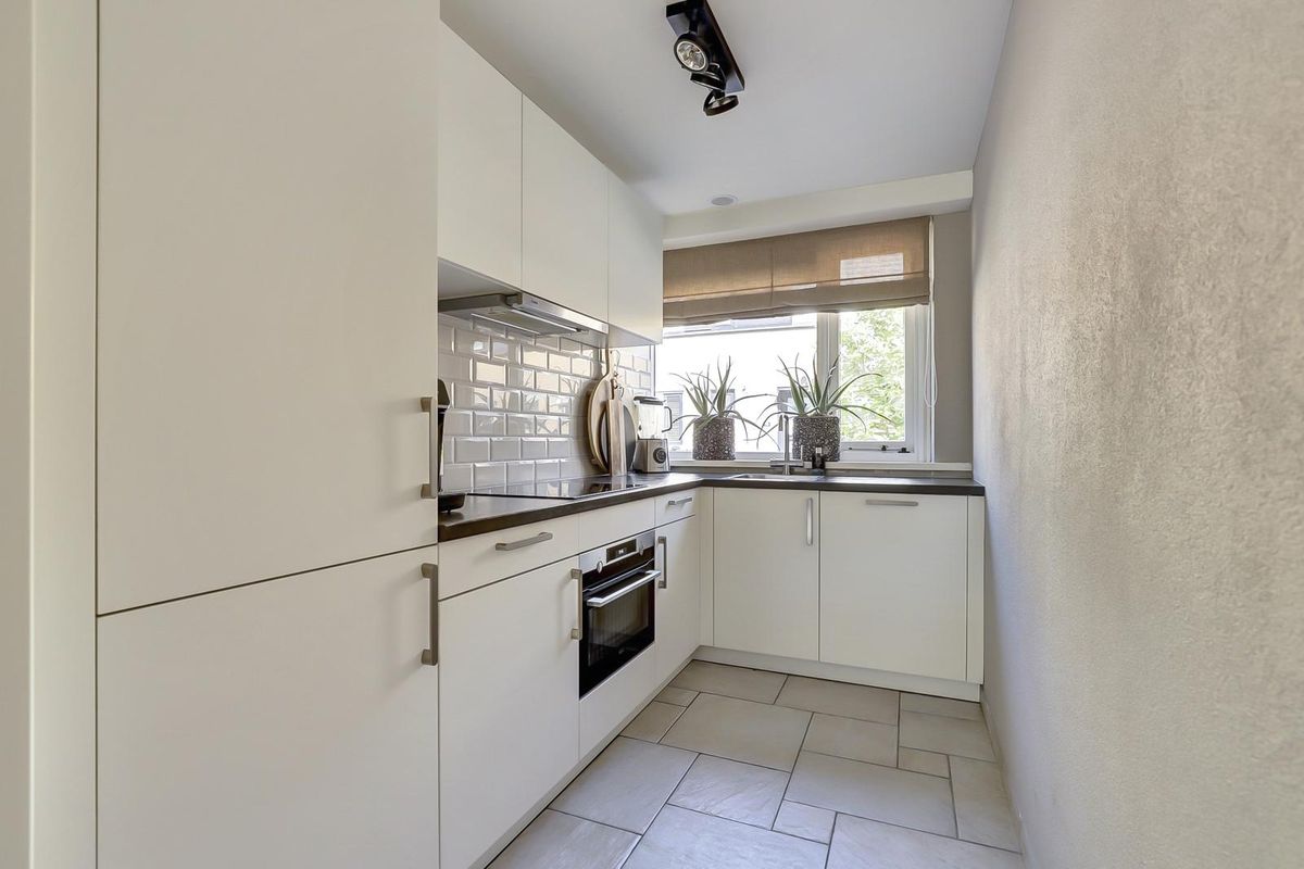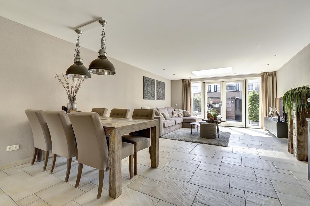 Je betreedt de woning via de hal met toilet (luxe, zwevend, geheel betegeld en fonteintje), meterkast en trapopgang. Vanuit hier kom je in de uitgebouwde woonkamer, die opvallend licht is dankzij de lichtstraat. Openslaande deuren geven toegang tot de zonnige tuin op het zuidwesten. De vloer is afgewerkt met lichte plavuizen en voorzien van vloerverwarming. De open keuken (2020) is luxe uitgevoerd met onder andere een koel-vriescombinatie, combimagnetron, vaatwasser, inductiekookplaat, kokend waterkraan en afzuigkap.