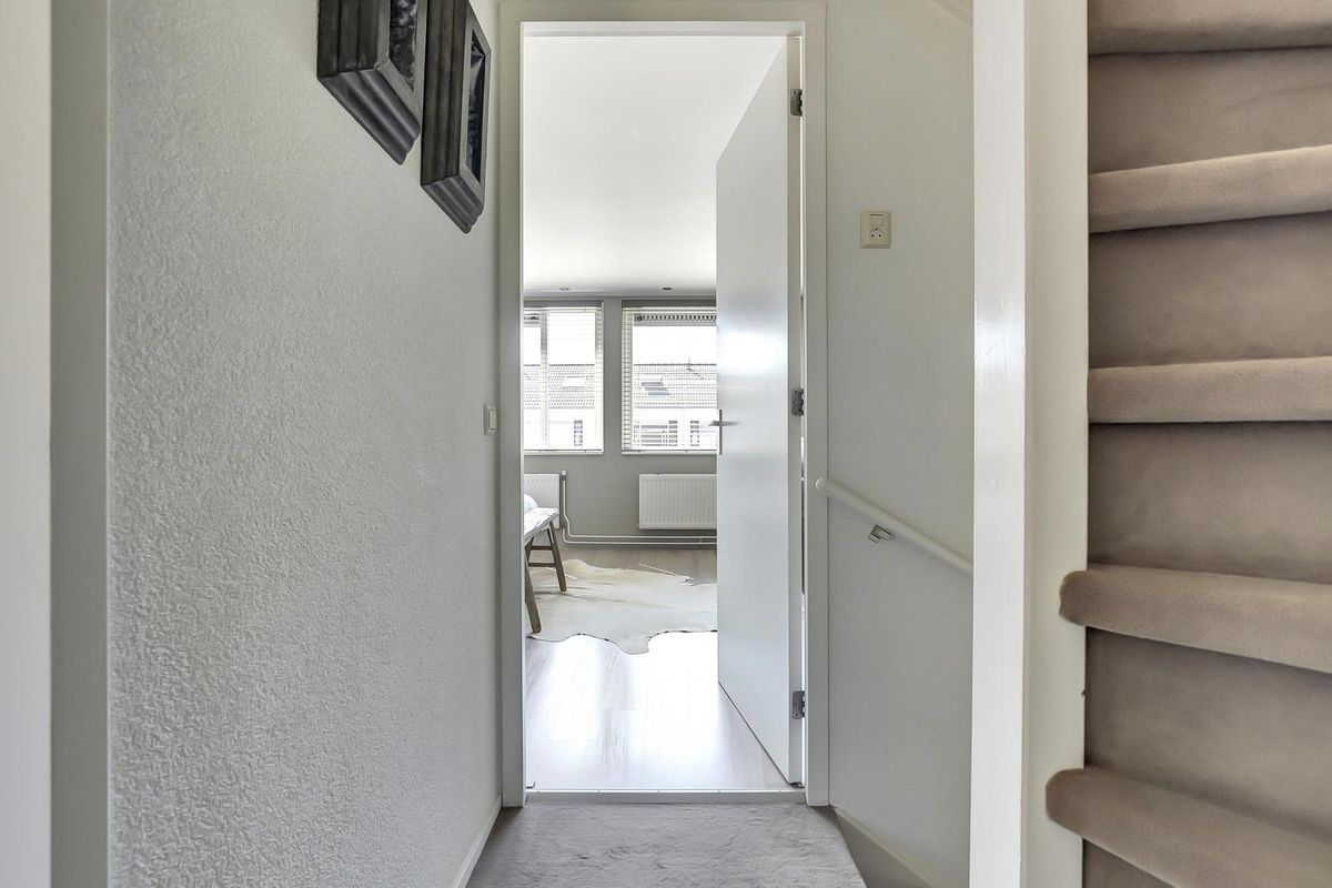 Op de eerste verdieping bevinden zich twee ruime slaapkamers (voormalig drie). Beiden zijn voorzien van een keurige laminaatvloer, de hoofdslaapkamer aan de achterzijde heeft daarnaast een gestukt plafond en elektrische rolluiken. De badkamer is modern en uitgerust met een ligbad/douche, een zwevend tweede toilet en een wastafelmeubel.