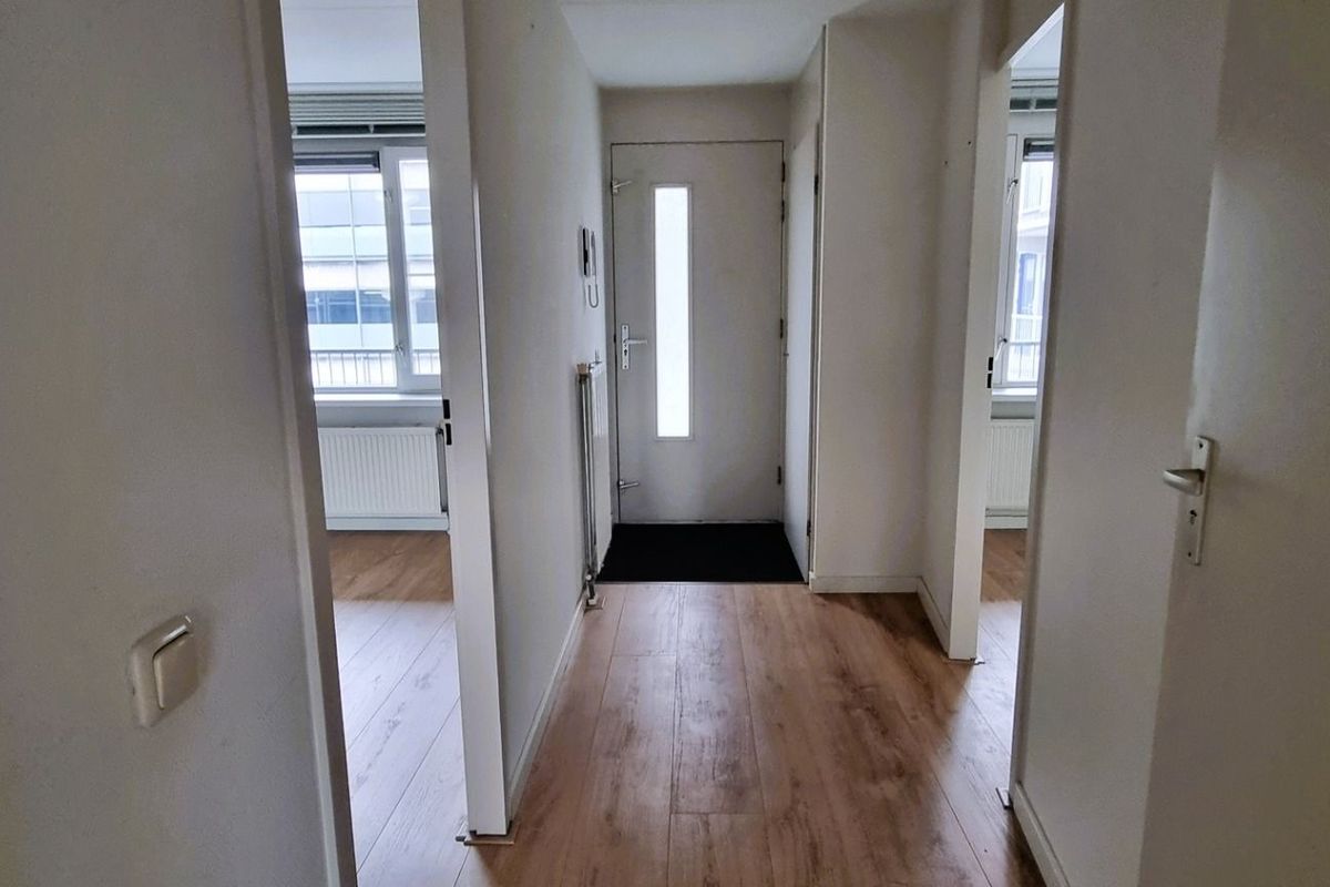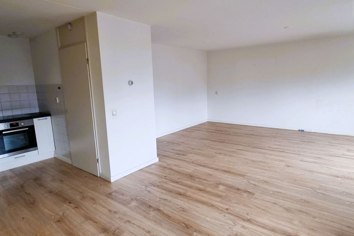 De ruime en zeer lichte woonkamer met schuifpui naar het balkon op het zuiden, de halfopen keuken voorzien van diverse inbouw apparatuur, inpandige bergruimte.