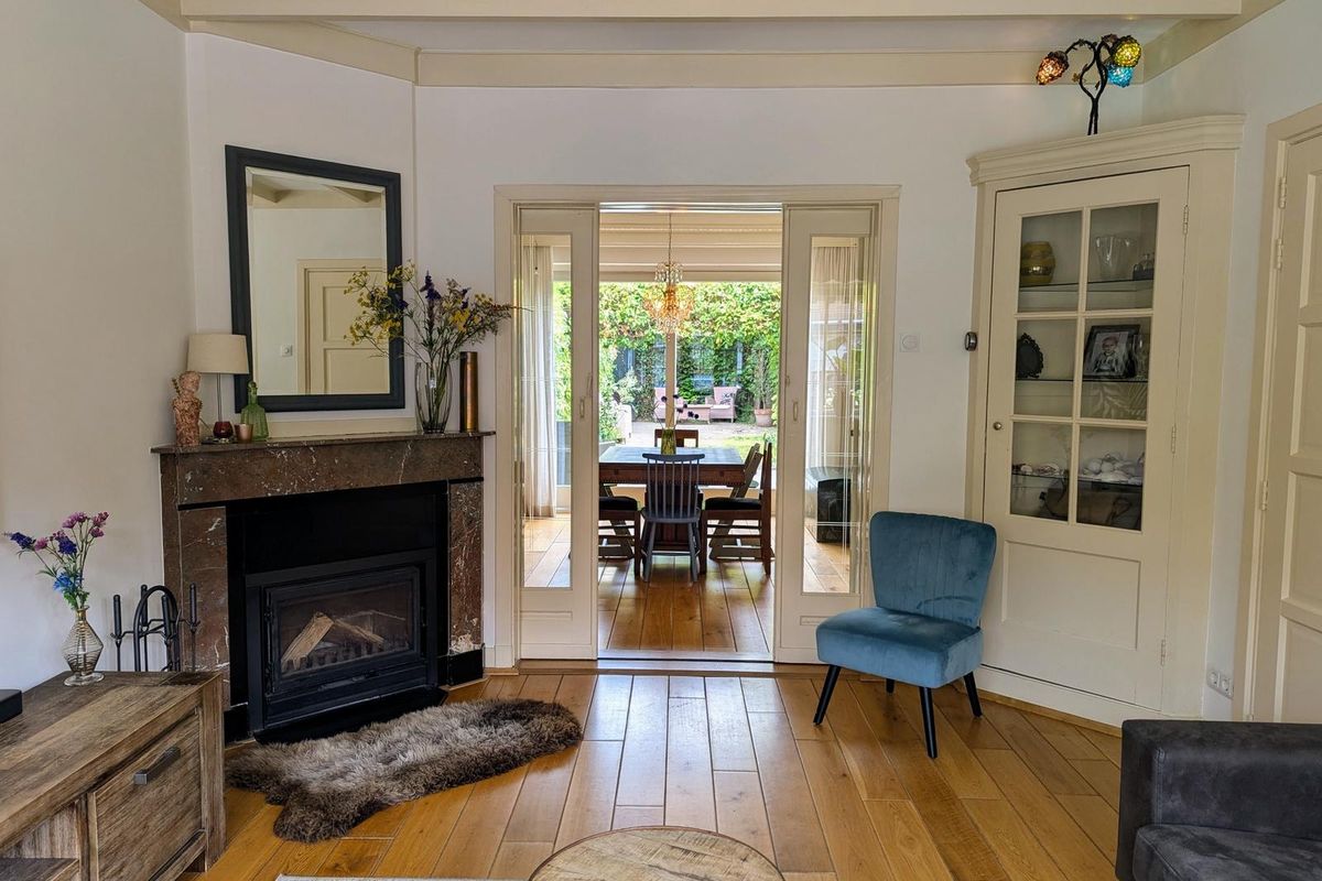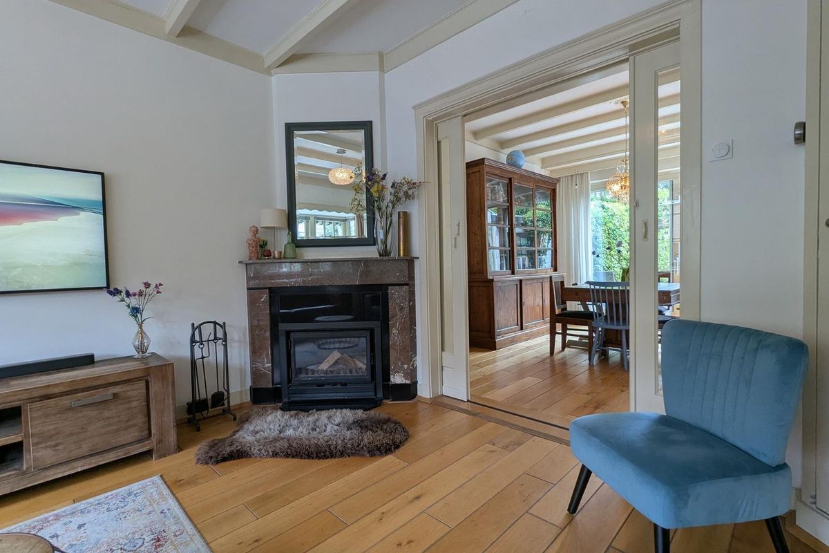 De woonkamer bestaat uit een voor- en achterkamer, gescheiden door en-suitedeuren. Zowel in de voor- als de achterkamer is een prachtige marmeren schouw aanwezig; in de voorkamer bevindt zich bovendien een goed werkende open haard. De erker aan de voorzijde zorgt voor veel lichtinval en een prettige sfeer.