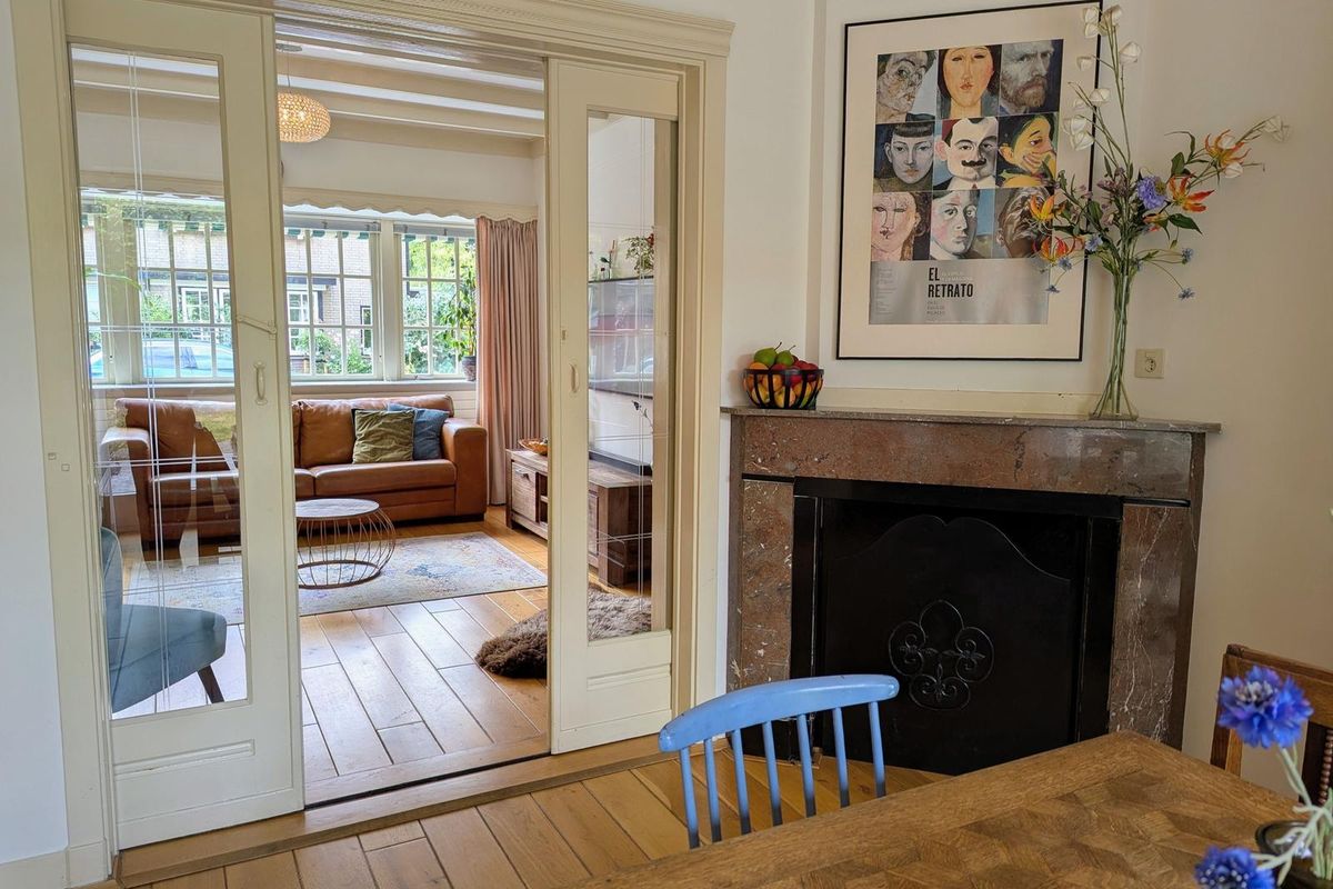- Karakteristieke jaren ’30 details, waaronder klassieke granitovloer, erker, schouwen, en suite schuifdeuren, plafondbalken, originele trapornamenten en wastafeltje.