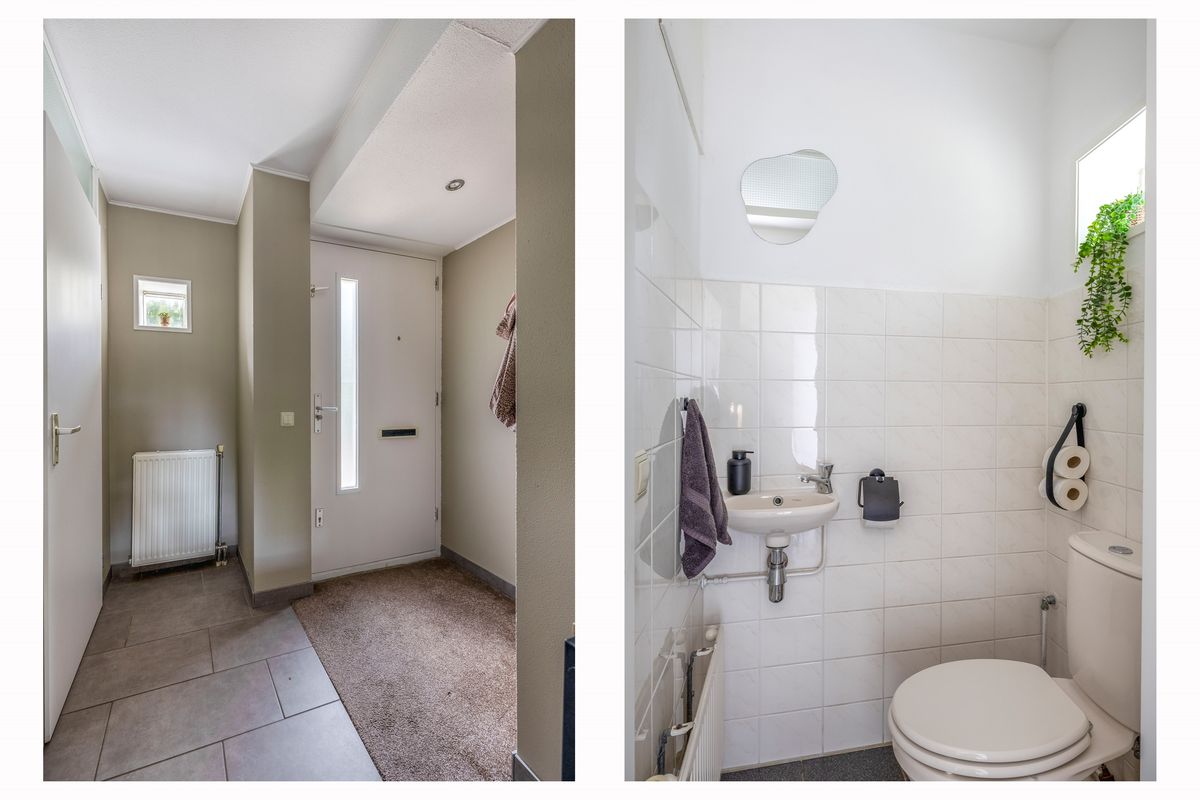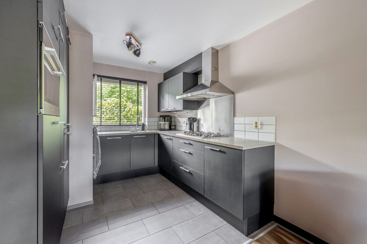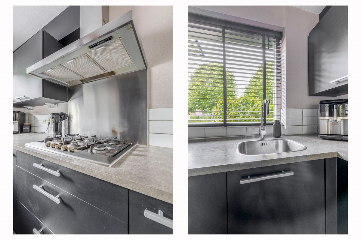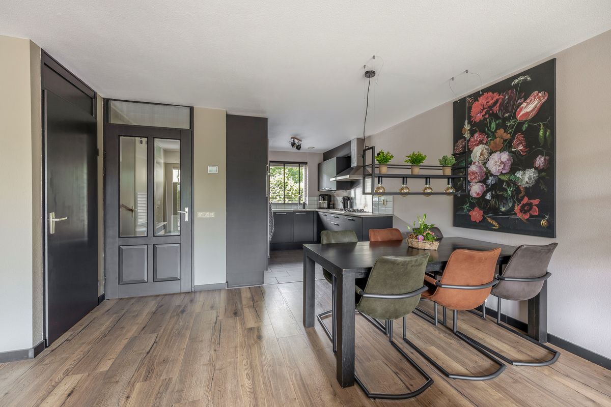 Via de voortuin kom je binnen in de ruime hal met garderobe, meterkast en toilet met fonteintje. Ook de trapopgang naar de eerste verdieping bevindt zich hier. De uitgebouwde woonkamer is een echte eyecatcher: de schuifpui en brede raampartijen zorgen voor een zee van licht en een fijne verbinding met de tuin. Er ligt een fraaie laminaatvloer, de convectorradiatoren zijn netjes weggewerkt en inbouwspots zorgen voor extra sfeer. Dankzij de praktische indeling is er volop plek voor een royale zithoek én een ruime eethoek. Extra comfort vind je hier dankzij de airconditioning die in 2024 is geplaatst en zowel kan koelen als verwarmen – ideaal voor energiezuinig gebruik in de winter.