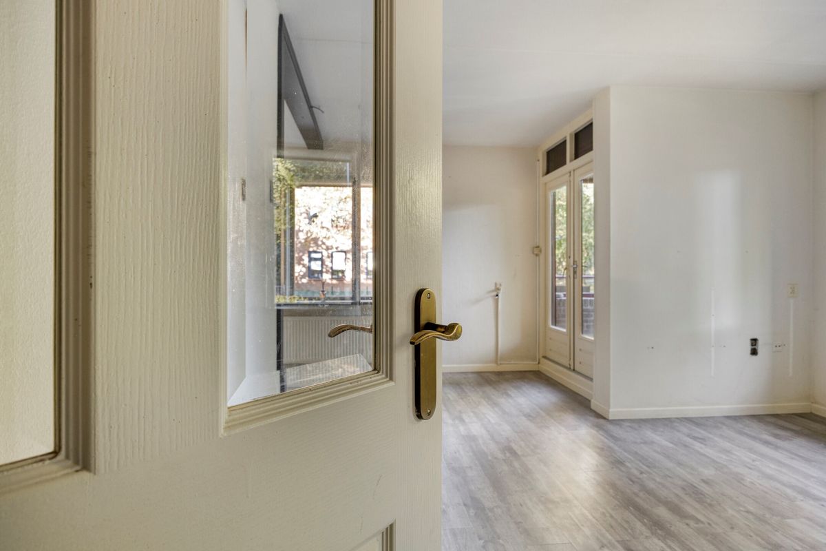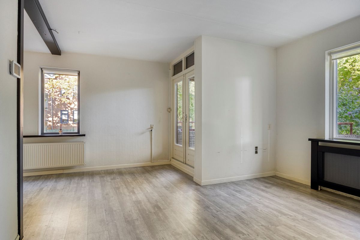 De ruime woonkamer straalt een prettige sfeer uit en dankzij de grote ramen is er volop lichtinval.