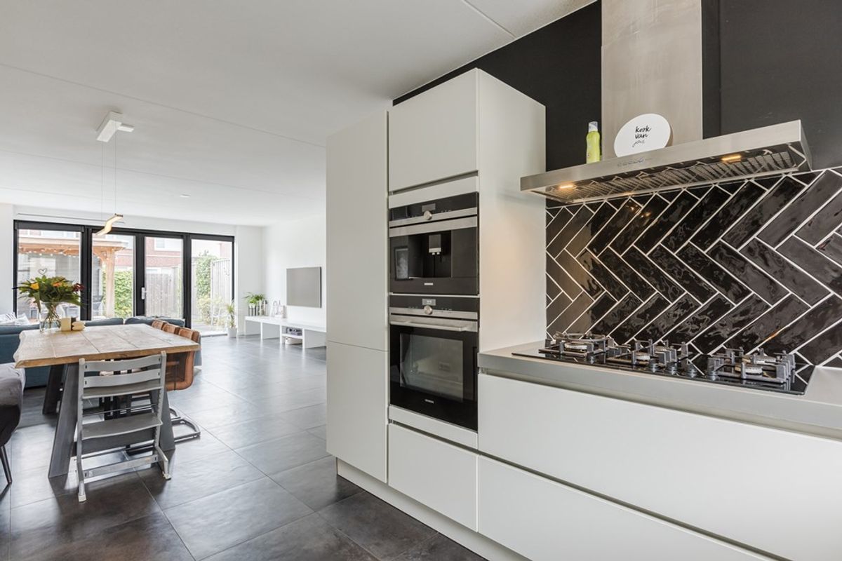 De open keuken aan de voorzijde is modern uitgevoerd en voorzien van een 5-pits gasstel, combi-oven, vaatwasser, koelkast, afzuigkap en zelfs een ingebouwde koffiemachine. Strak van afwerking en praktisch in gebruik — precies zoals je het wilt.