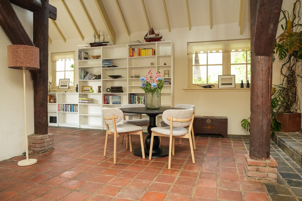 In het voorhuis tref je aan de voorzijde een werk-/logeerkamer, een tweede badkamer met ligbad, toilet en wastafel en een tweede kamer die in gebruik is als ‘voorkamer’, uiteraard voorzien van een sfeervolle open haard. Vanuit deze beide leefruimtes heb je zicht op de dijk en uiterwaarden. Een geweldige plek met klassieke elementen.