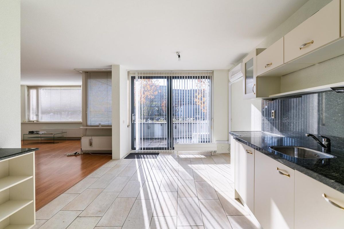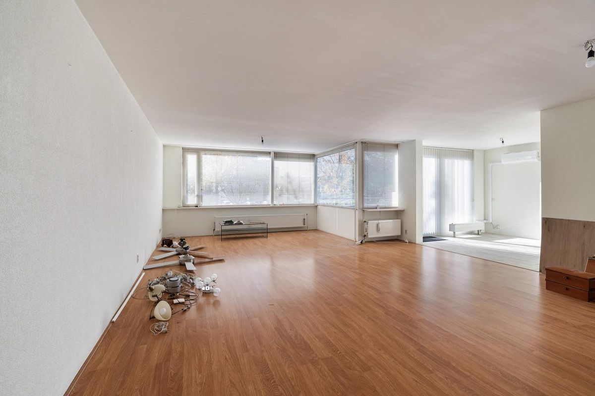 Het hart van de woning is zonder twijfel de royale woonkamer. Dankzij de grote raampartijen valt het daglicht rijkelijk naar binnen en heb je een vrij uitzicht over de singel en de rustige straat. De ruimte ademt een gevoel van rust en openheid en biedt volop mogelijkheden voor een gezellige zithoek en een ruime eettafel. In 2023 is er airco geplaatst, deze toevoeging maakt de ruimte nog comfortabeler.