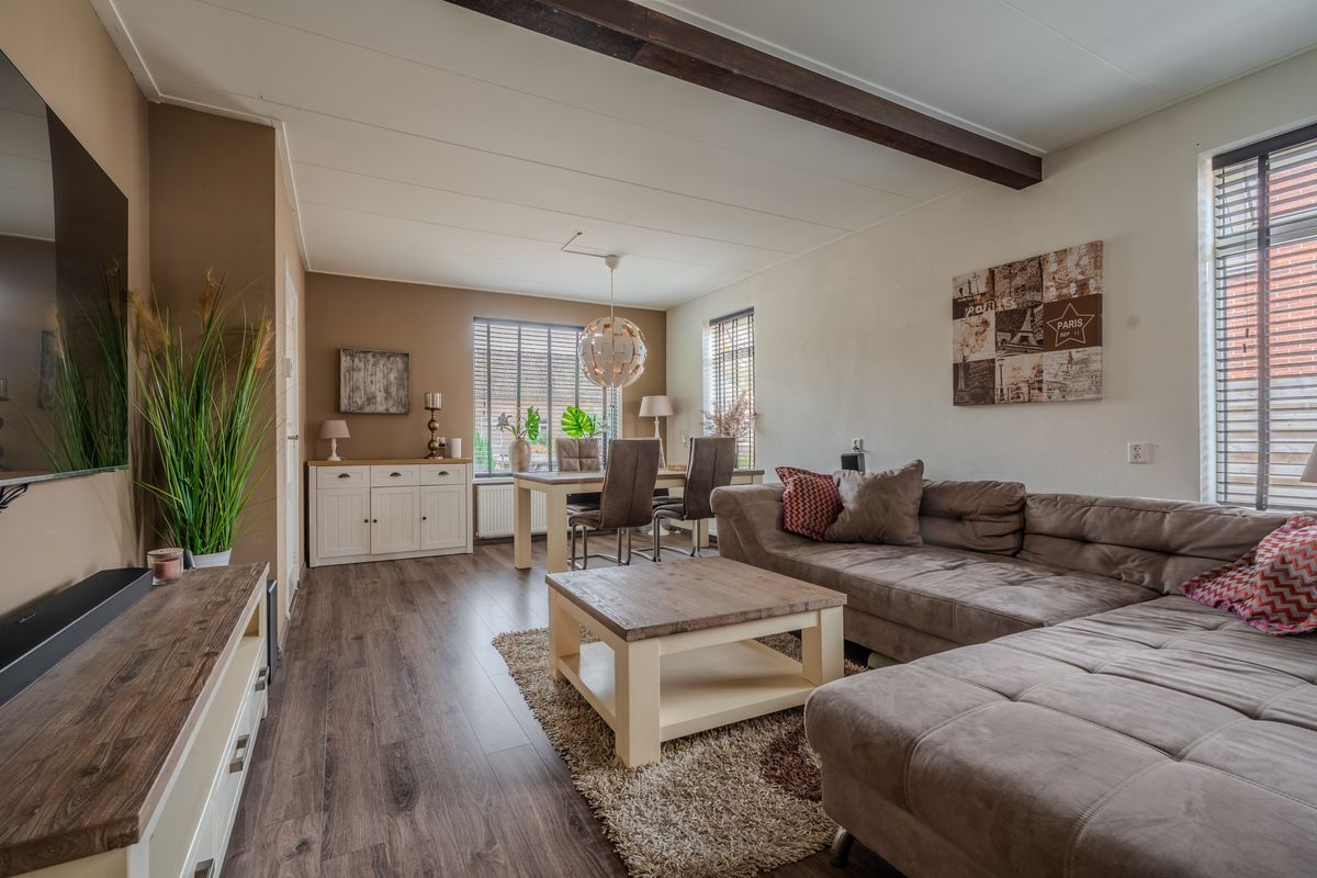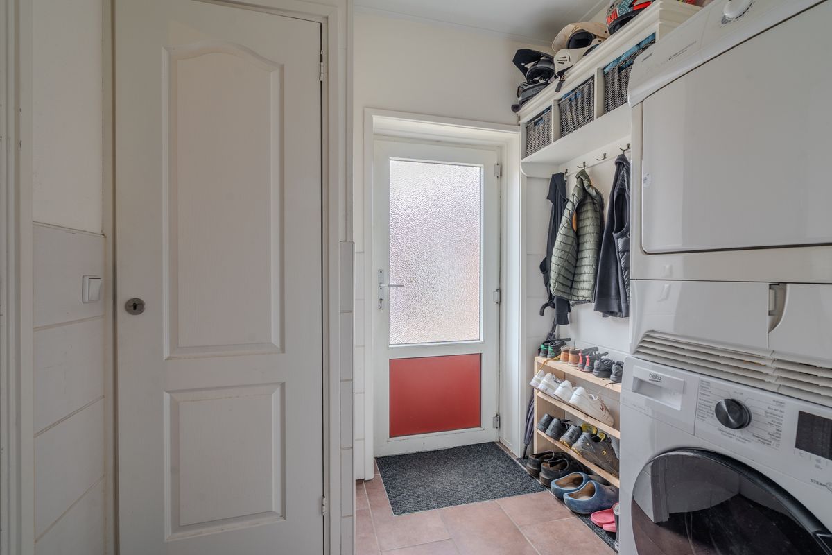 De besloten achtertuin op het noorden is sfeervol aangelegd met meerdere terrassen, een gazon en een vrijstaande houten berging (momenteel in gebruik als mancave) met overkapping. Zo kunt u optimaal genieten van zon, privacy en buitenleven.