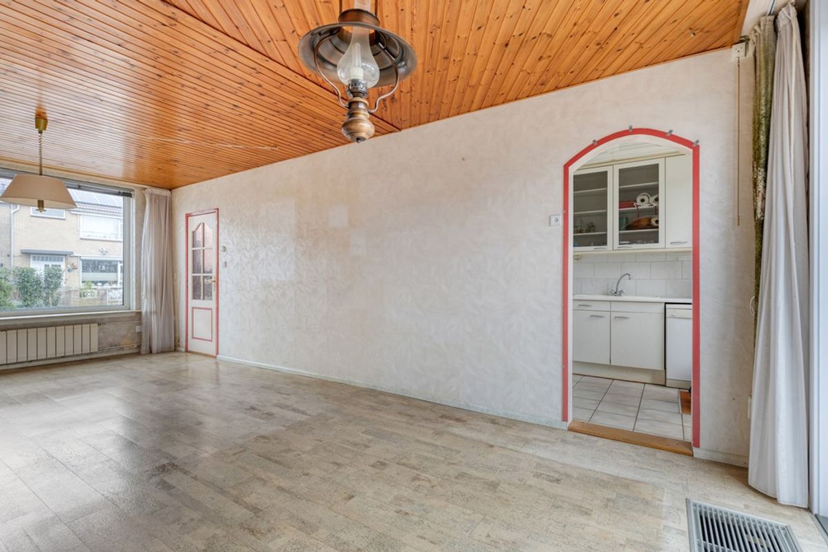De doorzon-woonkamer is lekker lang (7,37 meter) en licht, vanwege de kamerbrede ramen aan de voor- en achterzijde. Aan de achterzijde loopt u via de kunststof schuifpui de achtertuin in. Op de Artist Impression ziet u hoe leuk het is om de wand tussen de woonkamer en de nu halfopen keuken deels te verwijderen, zodat een mooie open leefruimte ontstaat!