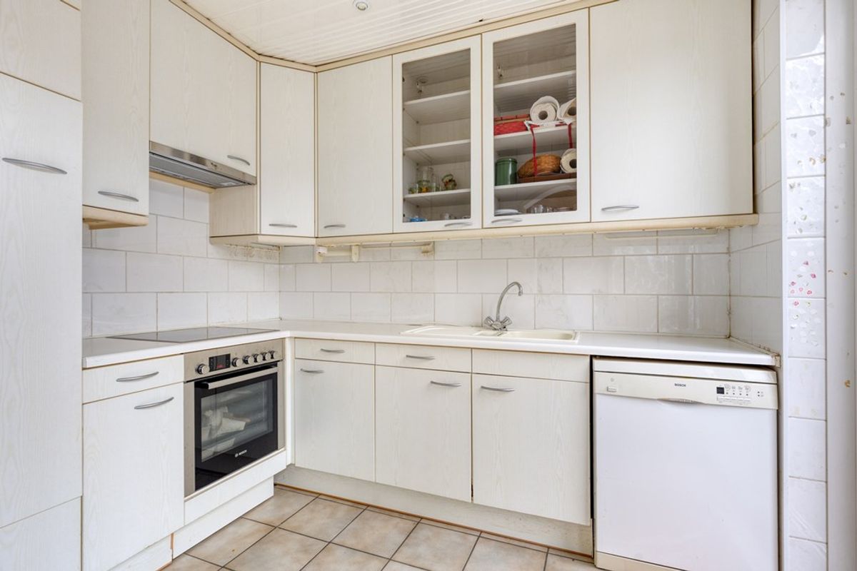 De hoekkeuken is geplaatst in 2013 en voorzien van de volgende inbouwapparatuur: keramische kookplaat, afzuigkap, oven, koelkast met vriesvak, vaatwasser en een 10 liter close in boiler.