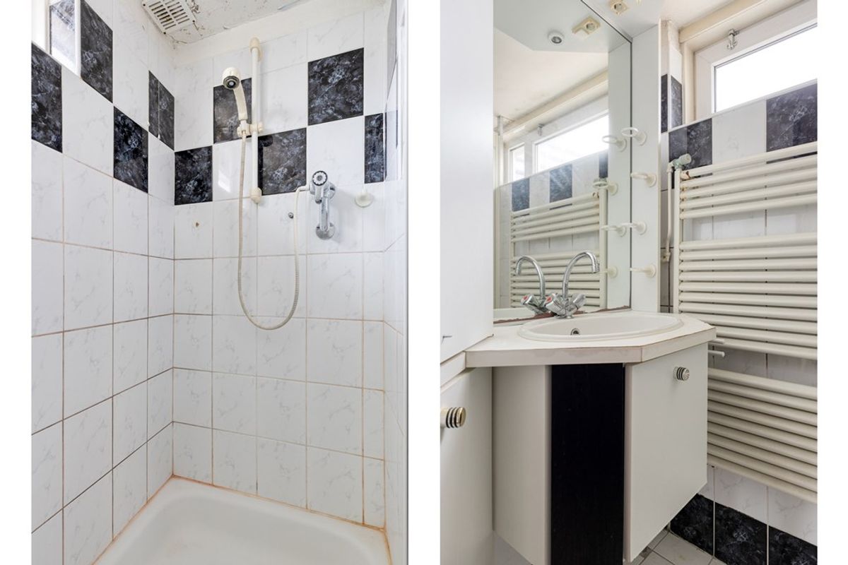 De badkamer is ingericht met een vierkanten douchehoek met deur en handdouche, wastafelmeubel met wastafel en wandkast, en een handdoekradiator. Natuurlijke ventilatie is hier goed mogelijk via het kunststof bovenraam. De wasmachine en droger, hier opgesteld, blijven voor u achter. U kunt deze natuurlijk ook verhuizen naar de tweede verdieping alwaar u een aansluiting kunt realiseren.