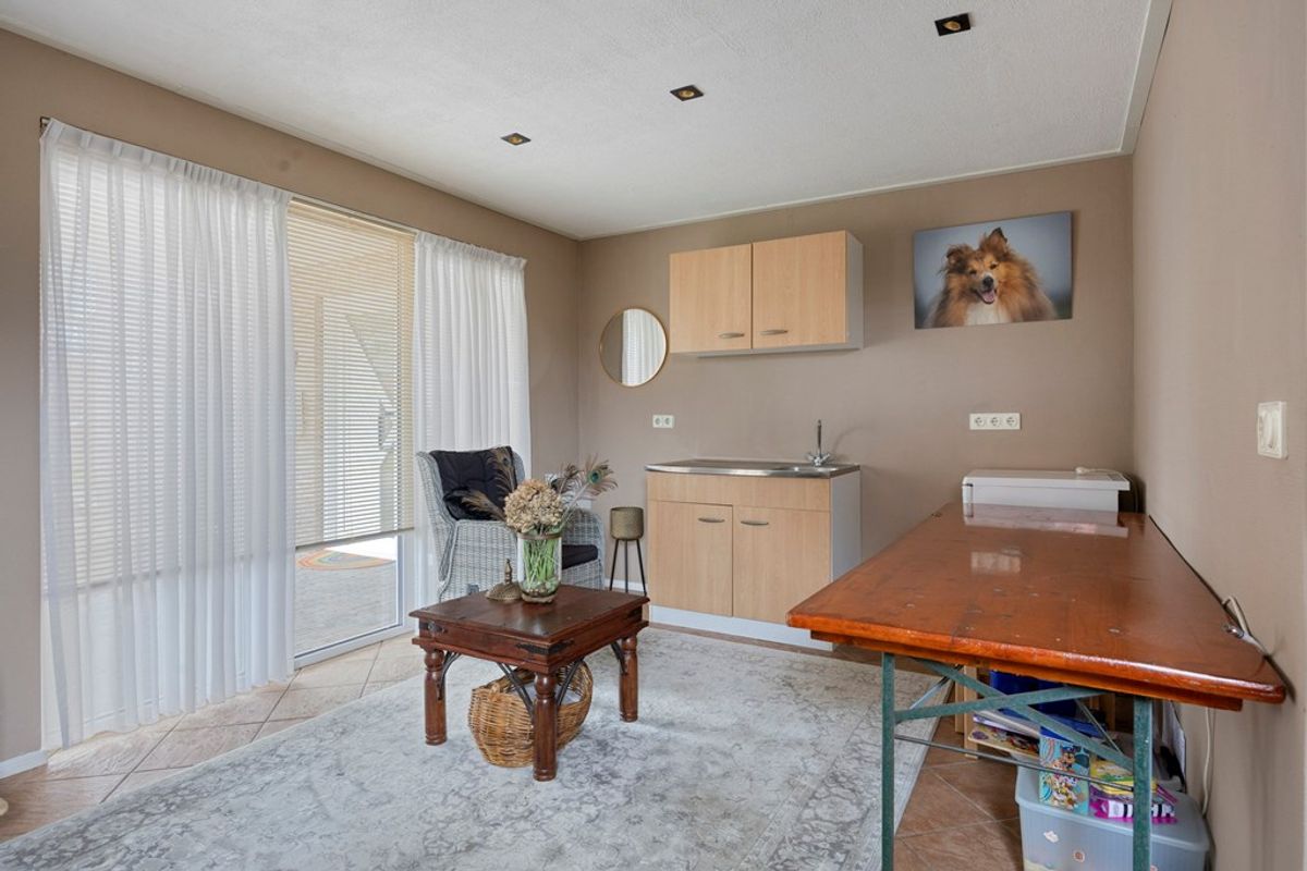 Aan de achterzijde bevindt zich een multifunctionele extra ruimte perfect als praktijkruimte, kantoor aan huis of speelkamer. Een waardevolle toevoeging voor gezinnen en ondernemers.