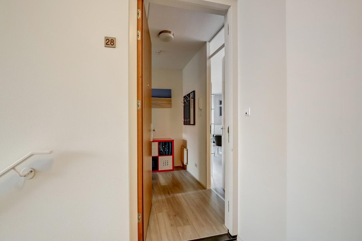 Binnenkomst in de hal met toegang tot het toilet (zwevend, half betegeld, met fonteintje), de meterkast en de moderne badkamer. Vervolgens loop je door naar de lichte woonkamer met grote ramen en een schuifpui naar het zonnige balkon , de ideale plek voor een kop koffie in de ochtendzon of een borrel in de namiddag. Dankzij het Franse balkon aan de andere zijde stroomt het licht van twee kanten binnen.
